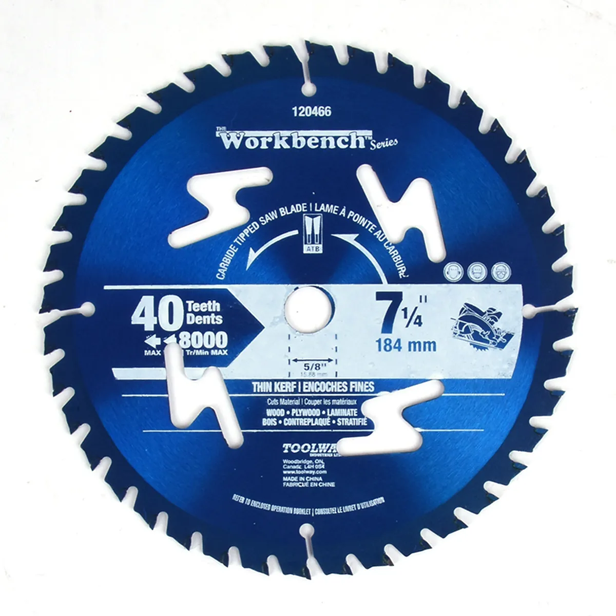 Saw Blade Carbide Tipped 7-1/4in 40T Thin Kerf