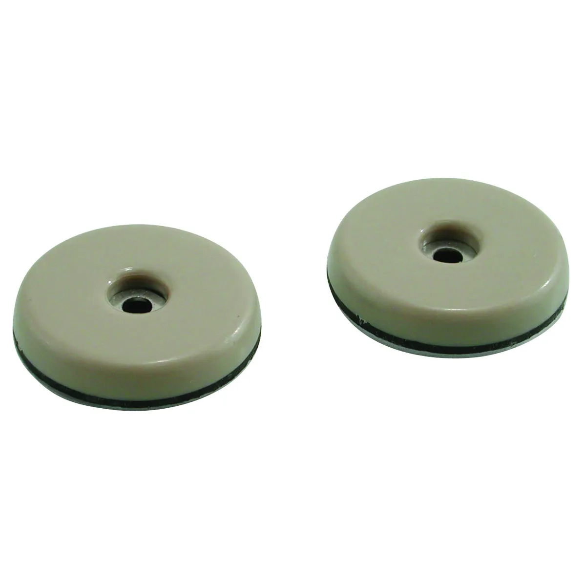 - 1 inch Diameter round taupe steel-reinforced plastic sliders with self-adhesive backer and screws - 8 Pack.