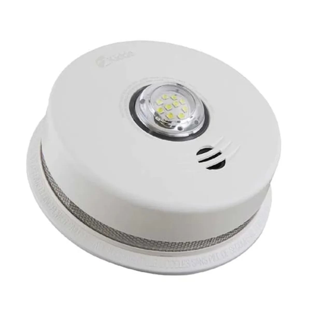 The Kidde 120V AC 2-in-1 LED Strobe and 10-Year Talking Smoke Alarm is an integrated 120V AC wire-in smoke alarm with 10-year sealed battery backup and LED strobe light that provides temporal patterns; visual and voice warnings. This alarm is equipped with a 177 candela strobe light (powered by Cree® LEDs); designed to notify the deaf and hard of hearing. The unique design measures only 5.8 cm (2.3in) in height; when mounted.