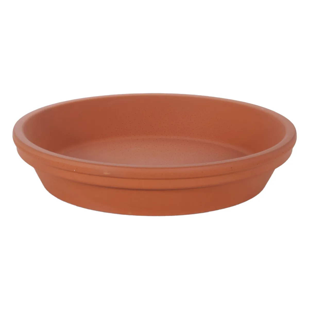 Spang (tm) terra cotta plant saucer collects water as it drains from your planter to help prevent spills and messes.