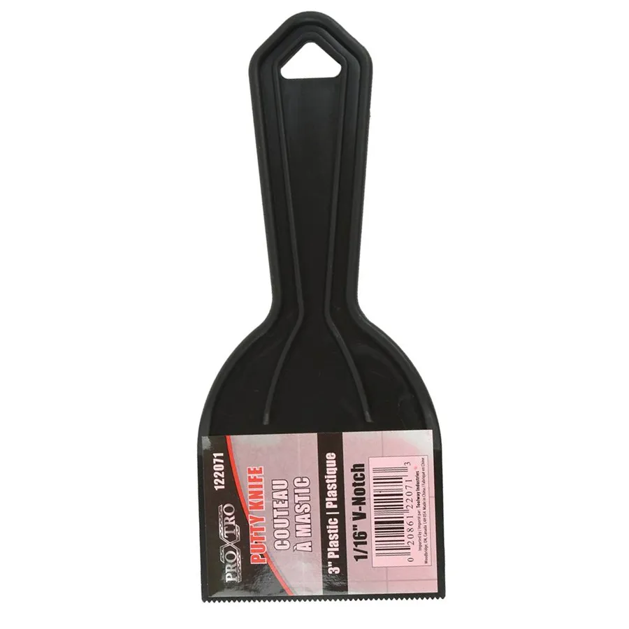 Putty Knife 3in (76mm) V-Notch 1/16in Plastic Black