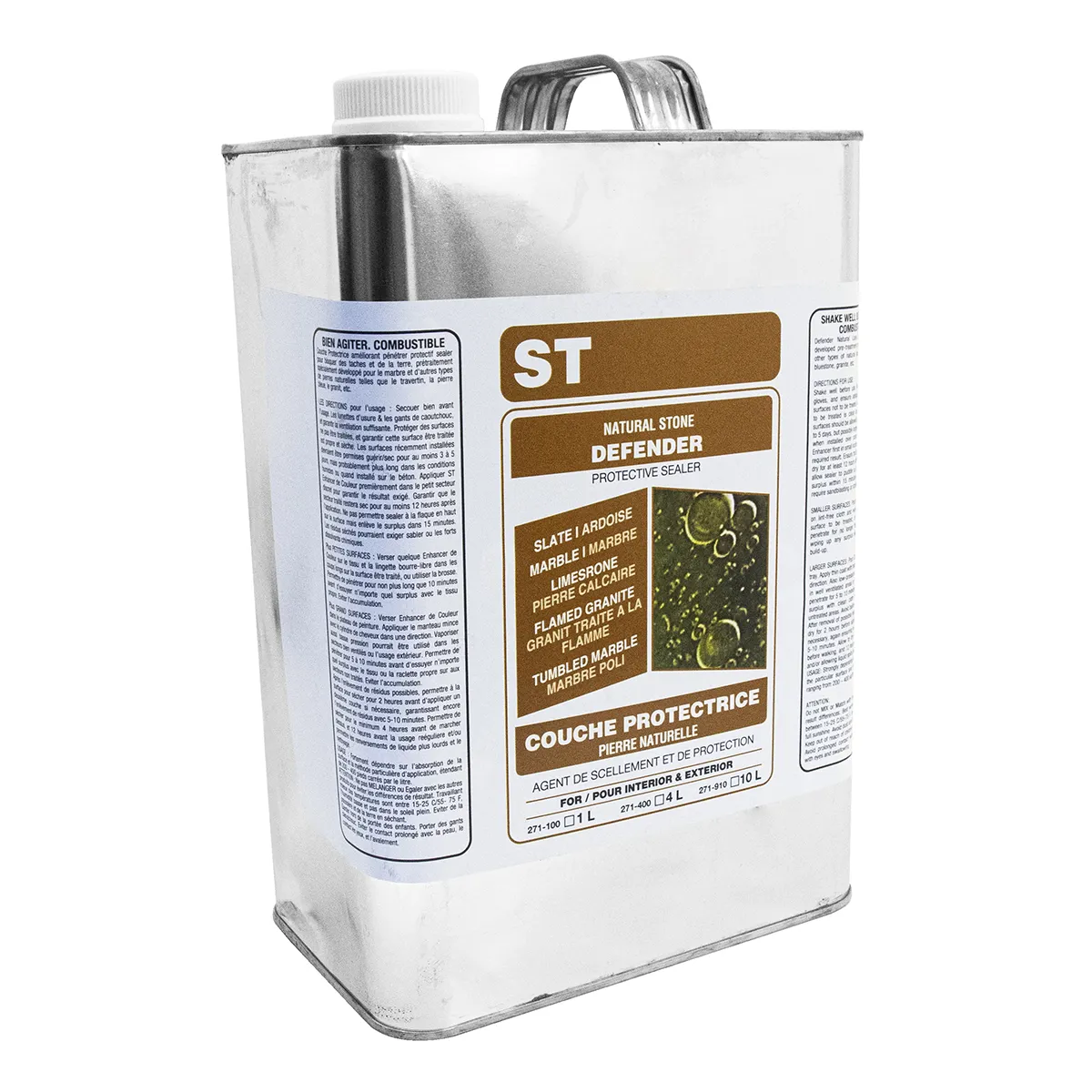 ST Defender Natural Look Sealer is a specially developed pre-treatment product for marble and other types of natural stone such as travertine; bluestone; granite; etc. This impregnating protector is also suitable for cement tiles and plastic tiles that contain bits of natural stone such as granite and marble composites. Cover age depends upon the absorption of the particular surface and method of application. Coverage ranges from 200 – 400 sqft/litre.