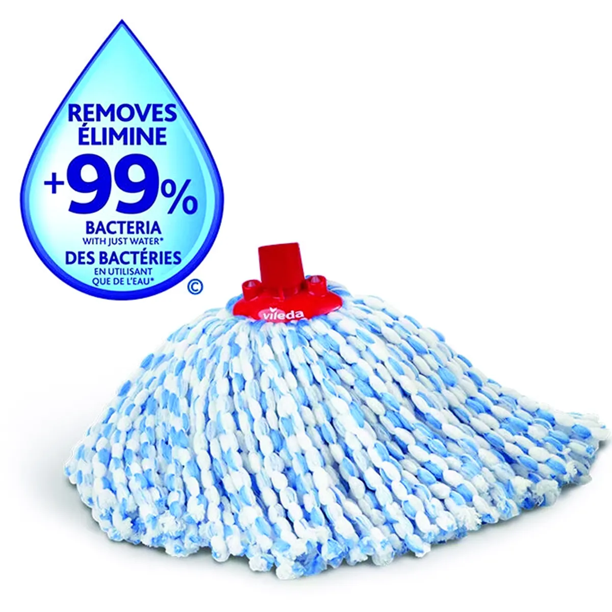 Multi-purpose microfibre mop removes over 99% of bacteria with water.