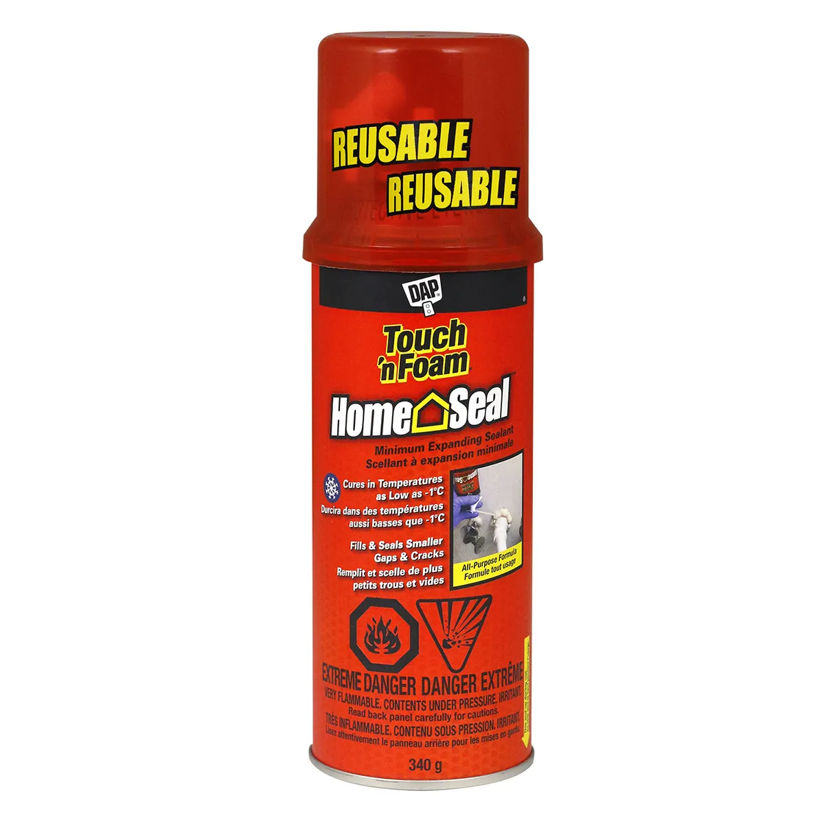 Home Seal is an all-purpose foam that is perfect for smaller cracks and voids. Use it on both indoor and outdoor applications.