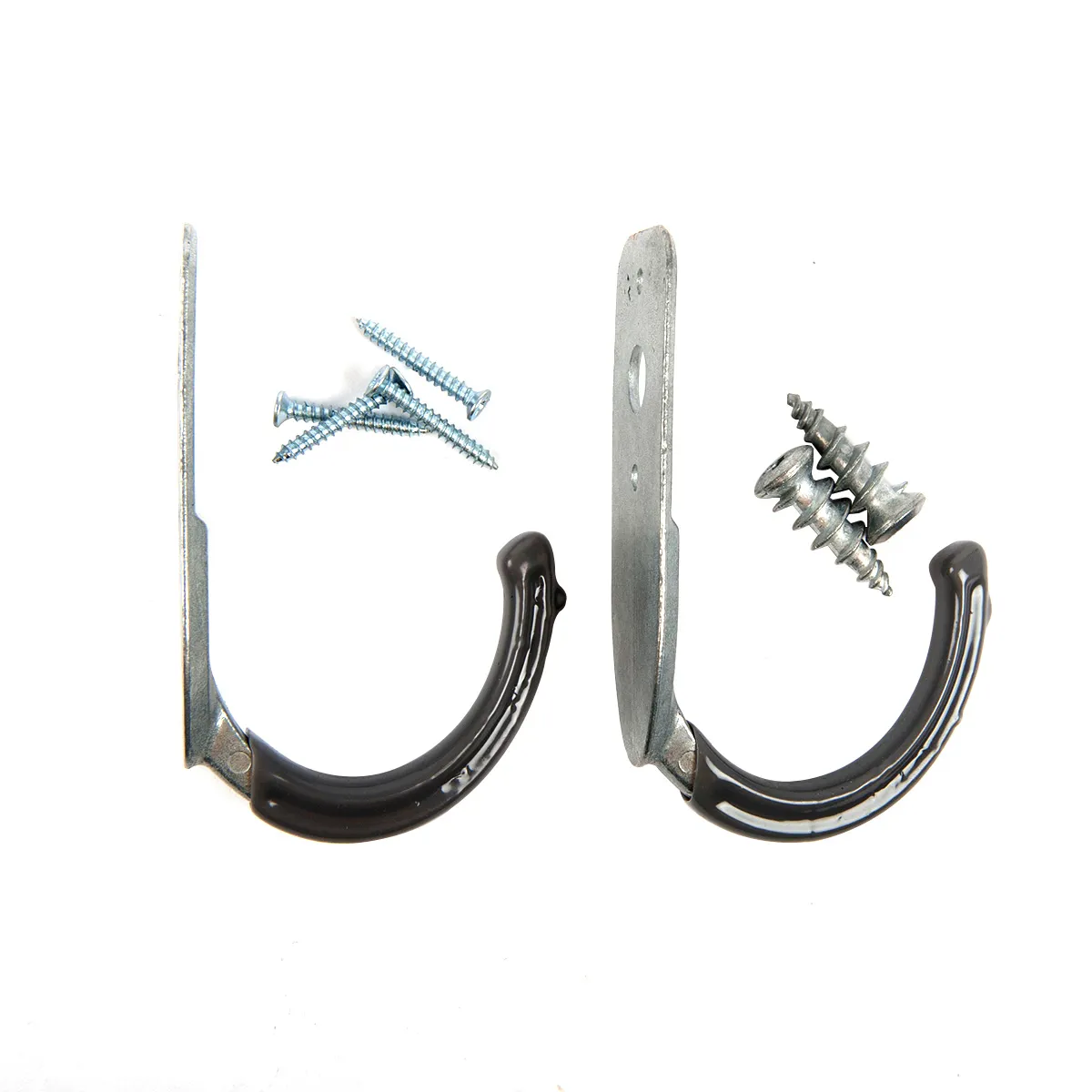 Ideal for hanging hoses; sport accessories; tires; lawn chairs; garden tools and accessories. Rust resistant finish. Easily mounts in wood stud and drywall. Mounting hardware included. Supports: Up to 50 lbs.