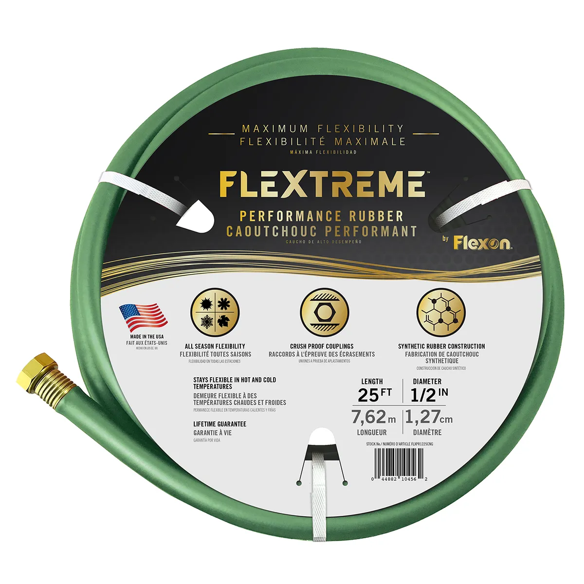 >>Flextreme™ Performance Rubber hoses are constructed of lightweight, synthetic rubber making them much easier to use than heavy rubber hoses. They also maintain maximum flexibility all year around making them the ideal hoses for both residential and professional applications.