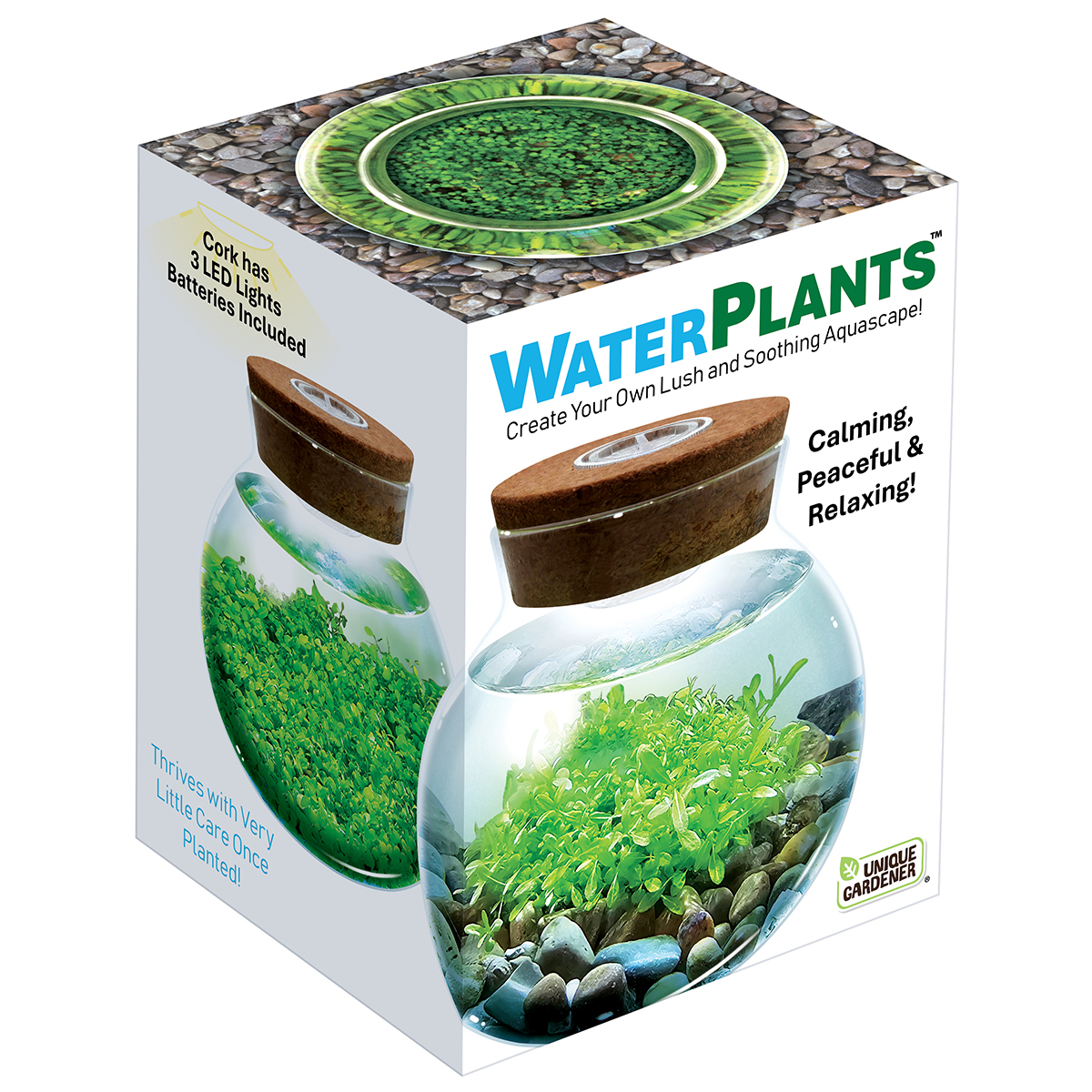 Experience the joy of building your own miniature aquatic terrarium with this all‑in‑one kit. Perfect for beginners and hobbyists alike, it includes everything required to create a thriving, low‑maintenance underwater world. Grow some of the world’s smallest aquatic plants that flourish effortlessly on the included gravel, accent stone, or a combination of both. At the center of this ecosystem is Water Jade, a vibrant green plant that not only elevates the beauty of your terrarium but naturally removes nitrates from the water—helping reduce algae growth and keep your environment balanced. To enhance the ambiance, the cork top is fitted with three bright LED accent lights, casting a warm illumination over your living aquascape.
