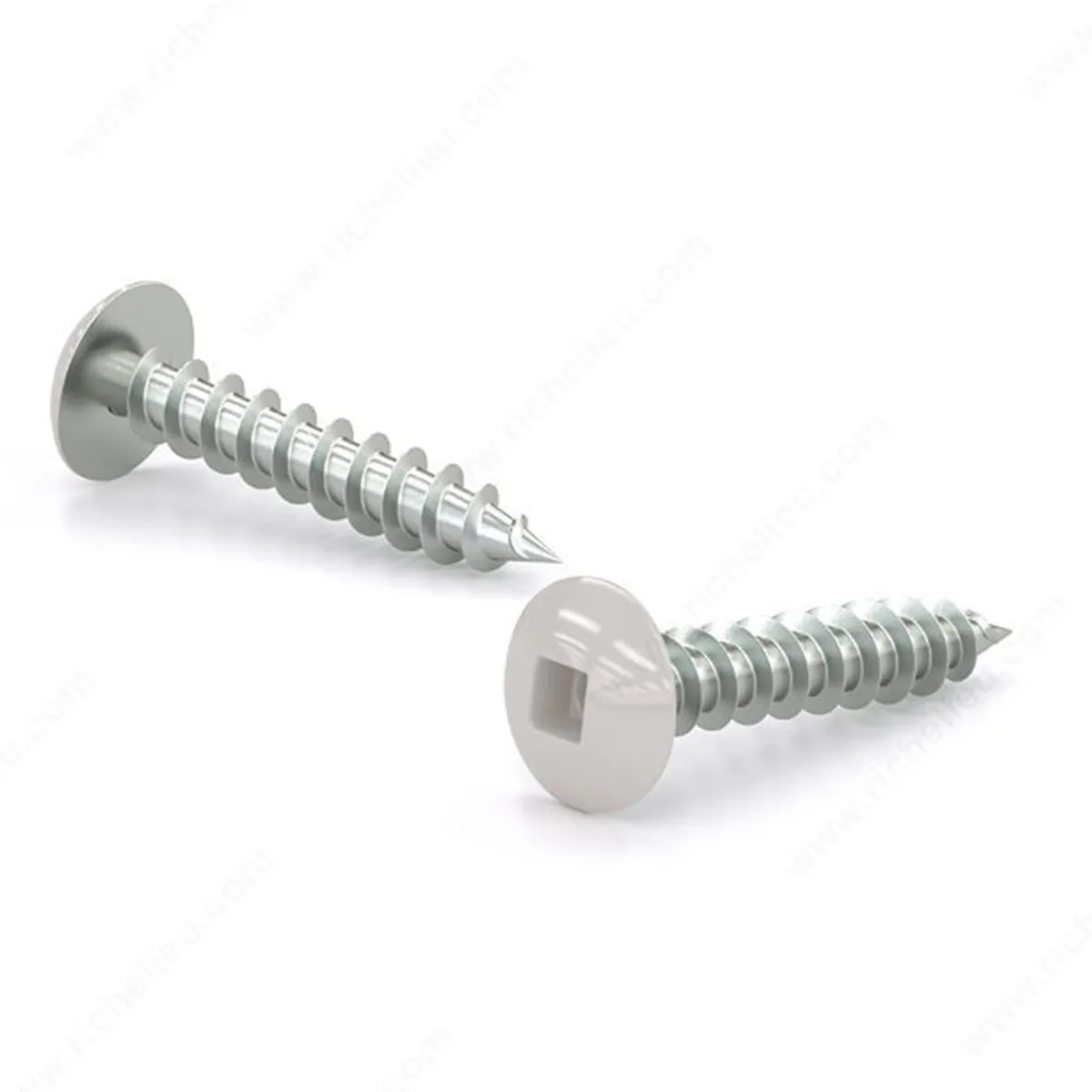 The screws are easily secured with a square driver and have a truss head with a white finish that blends in with their surroundings.