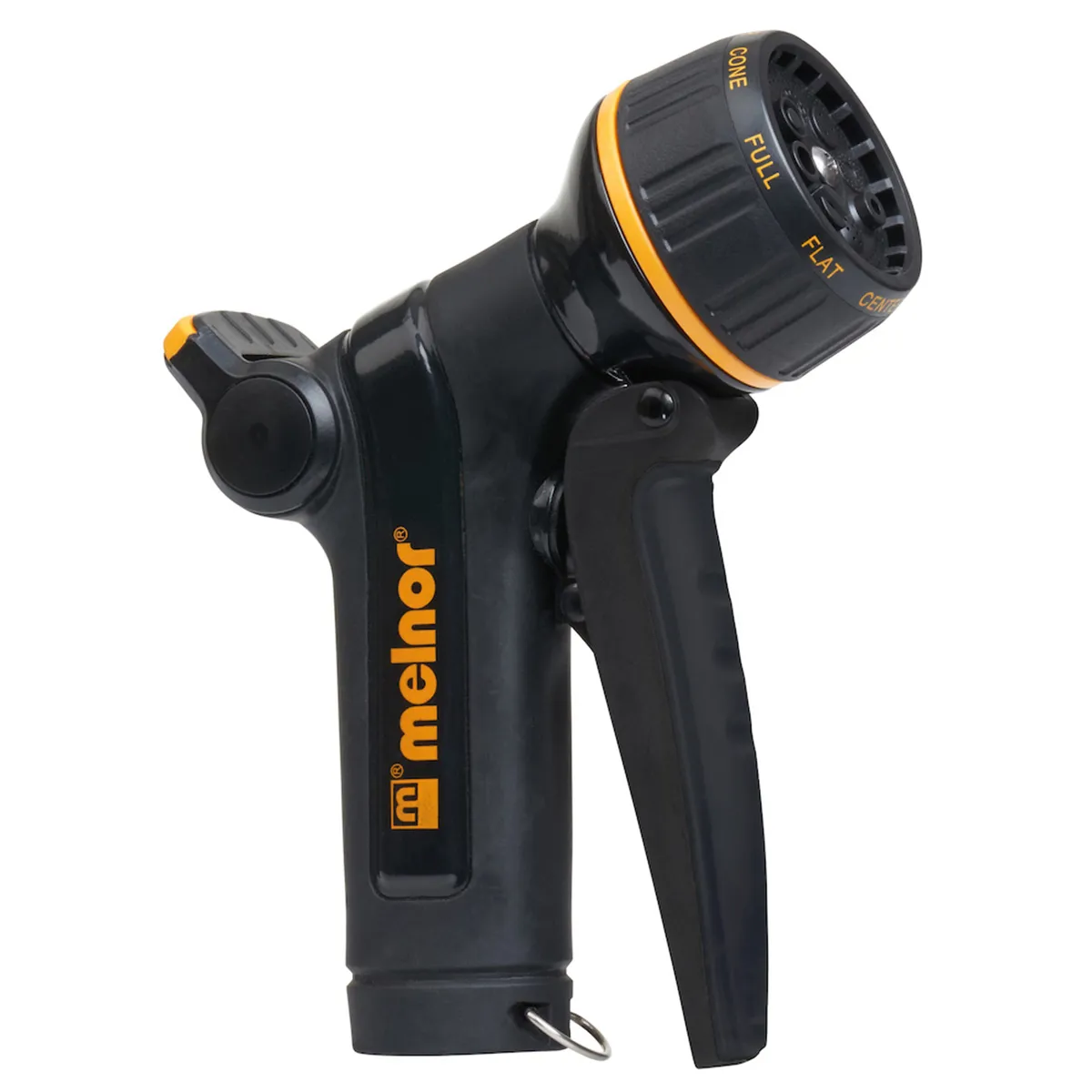 • Tackle any chore around the house from washing the car to watering the garden, with the heavy-duty XT 8-pattern adjustable nozzle. Control the amount of water you need in one easy motion with the thumb control flow lever. The front trigger with a rubberized, slip-resistant grip makes it comfortable to handle. Melnor XT Nozzles are built with a metal core for durability you can count on.